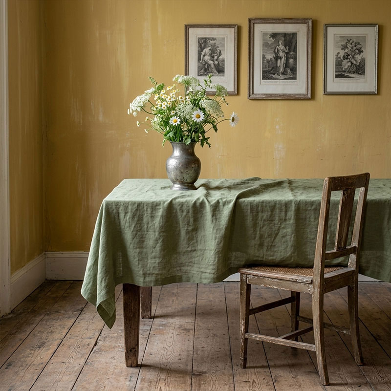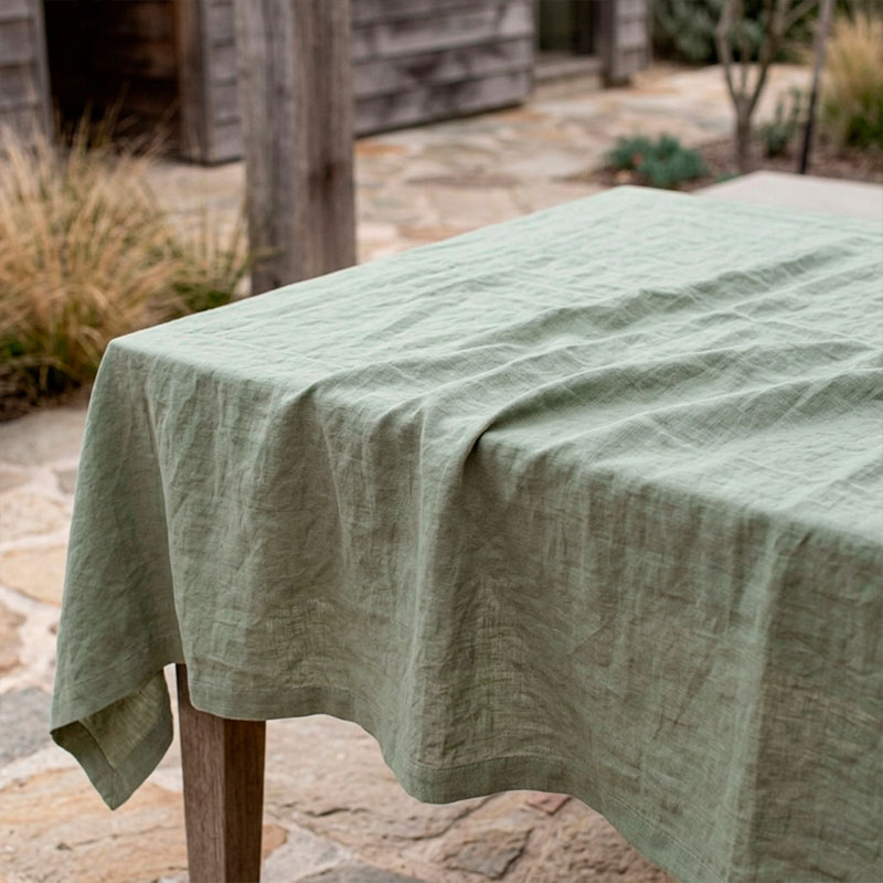 Linen tablecloth Vintage Frosty Green is also available in custom sizes.