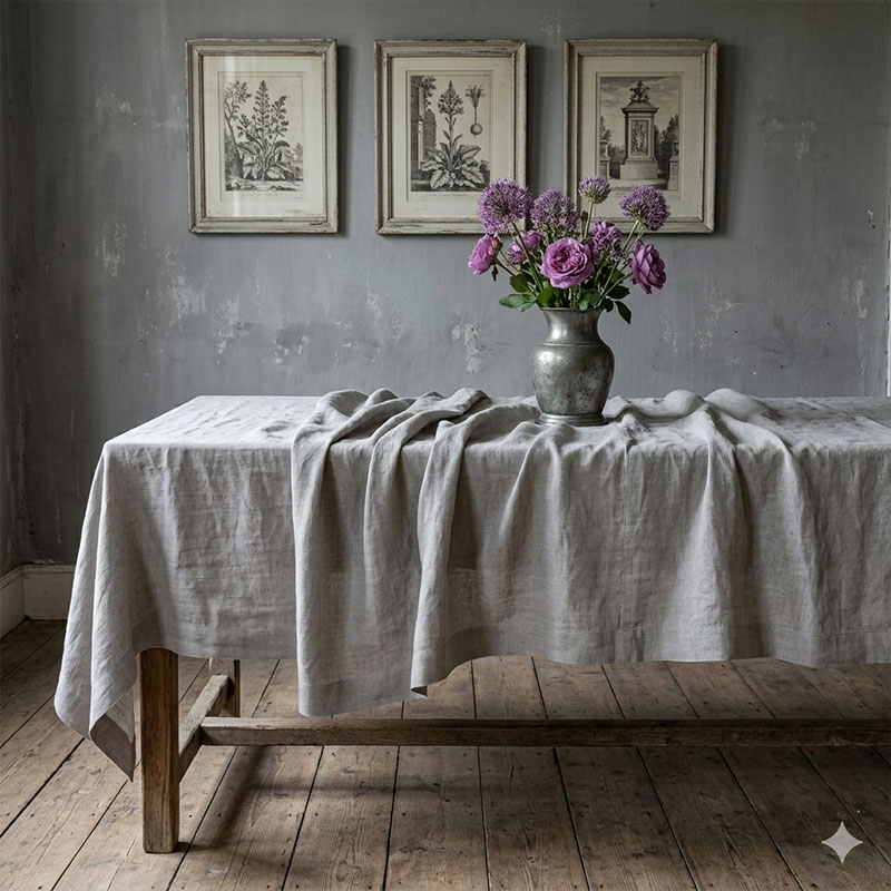 The Linen Tablecloth Vintage Grigio is also available in custom sizes.