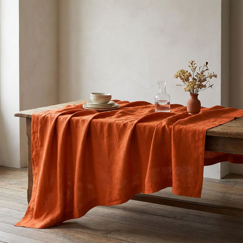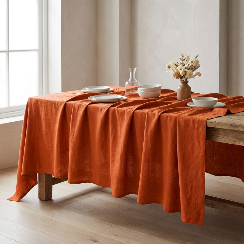 Add simple, casual style to your table with this charming pure linen washed tablecloth. Pre-washing and machine-drying give it an impeccably soft feel and timeless look–and no ironing is required. The Linen tablecloth Vintage Sunset is also available in custom sizes.