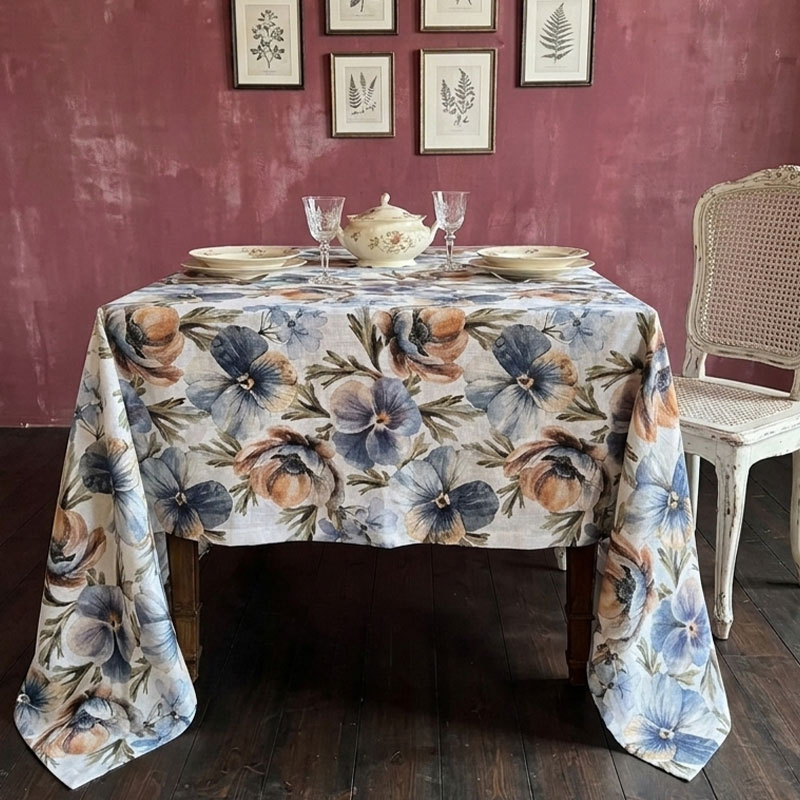 Natural elegance and delicate colors define this linen tablecloth Panse’ Allover with an exclusive design by La Bottega di Casa. A romantic touch for your table, every day.